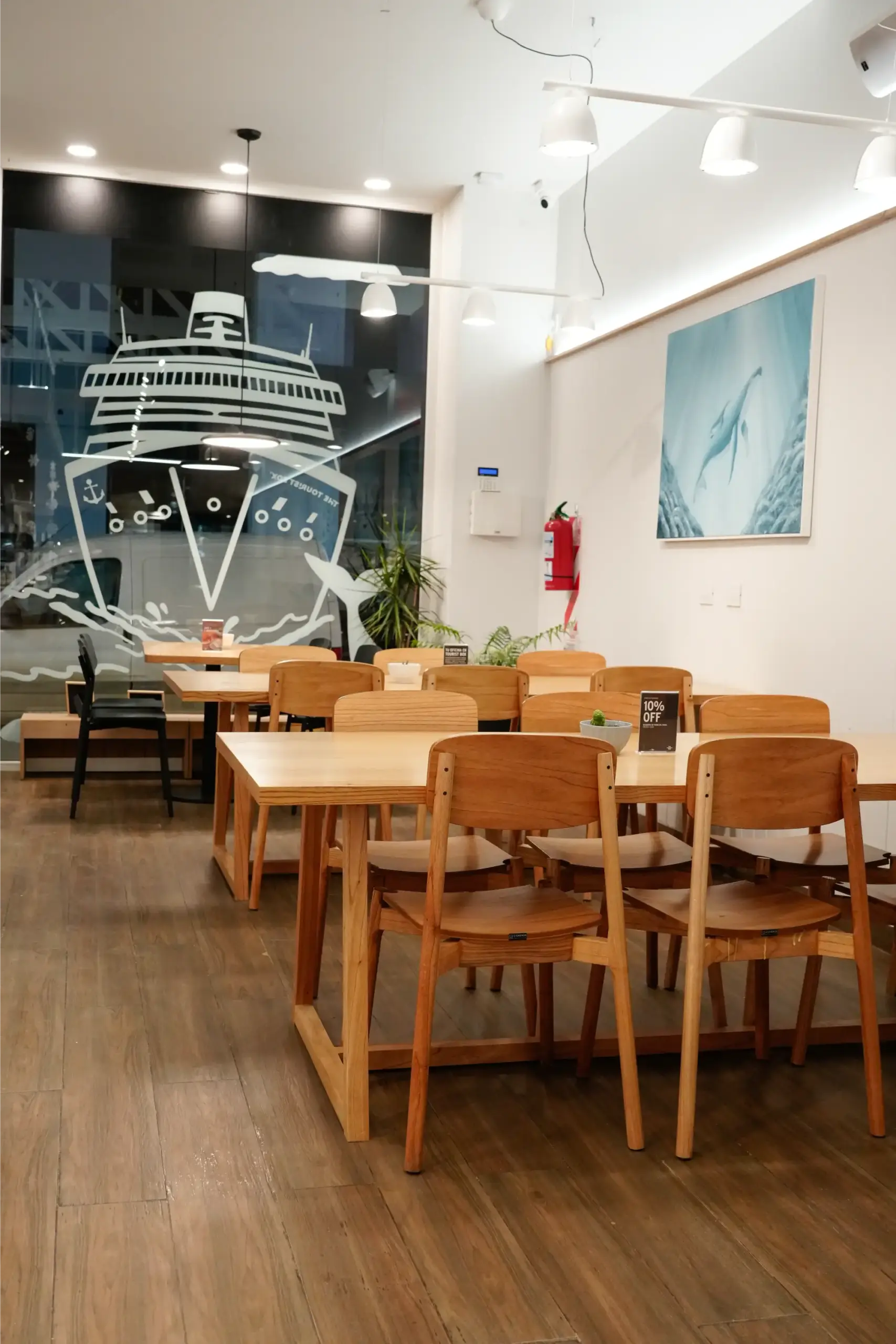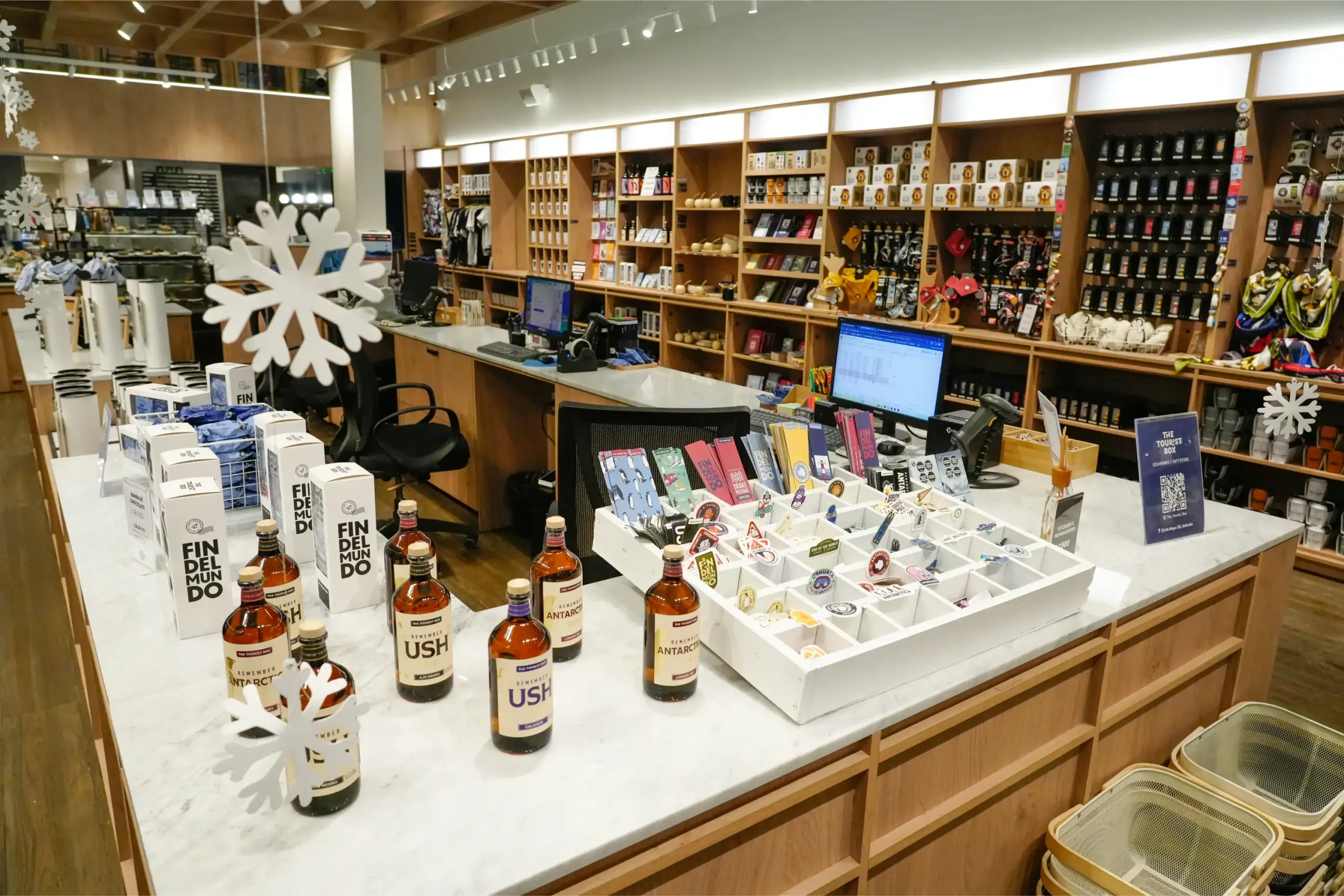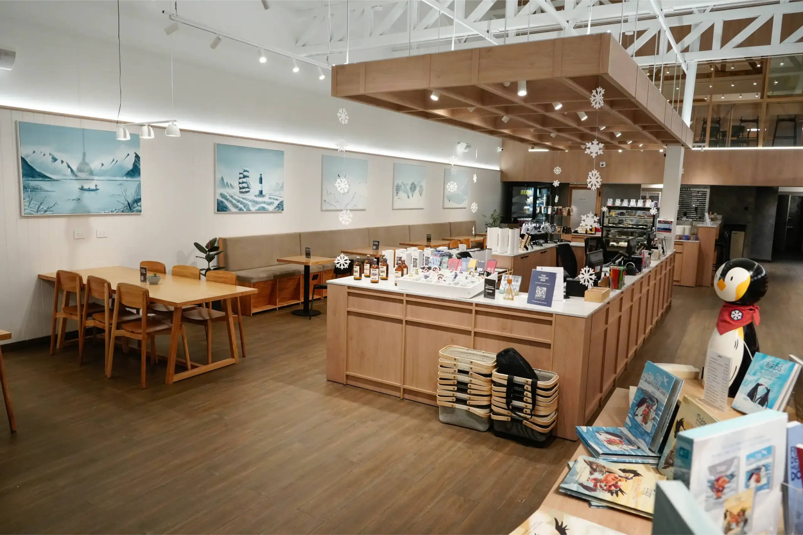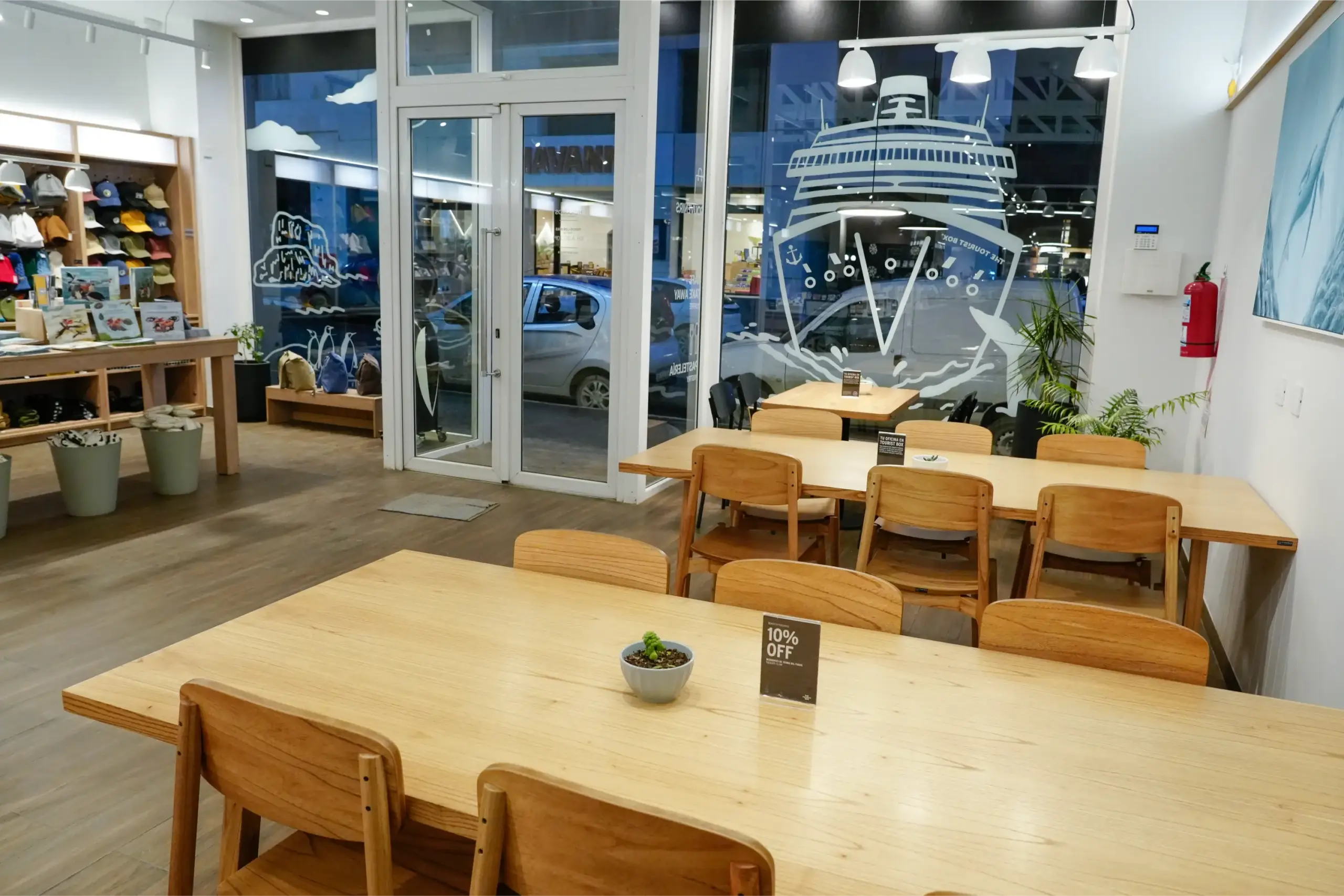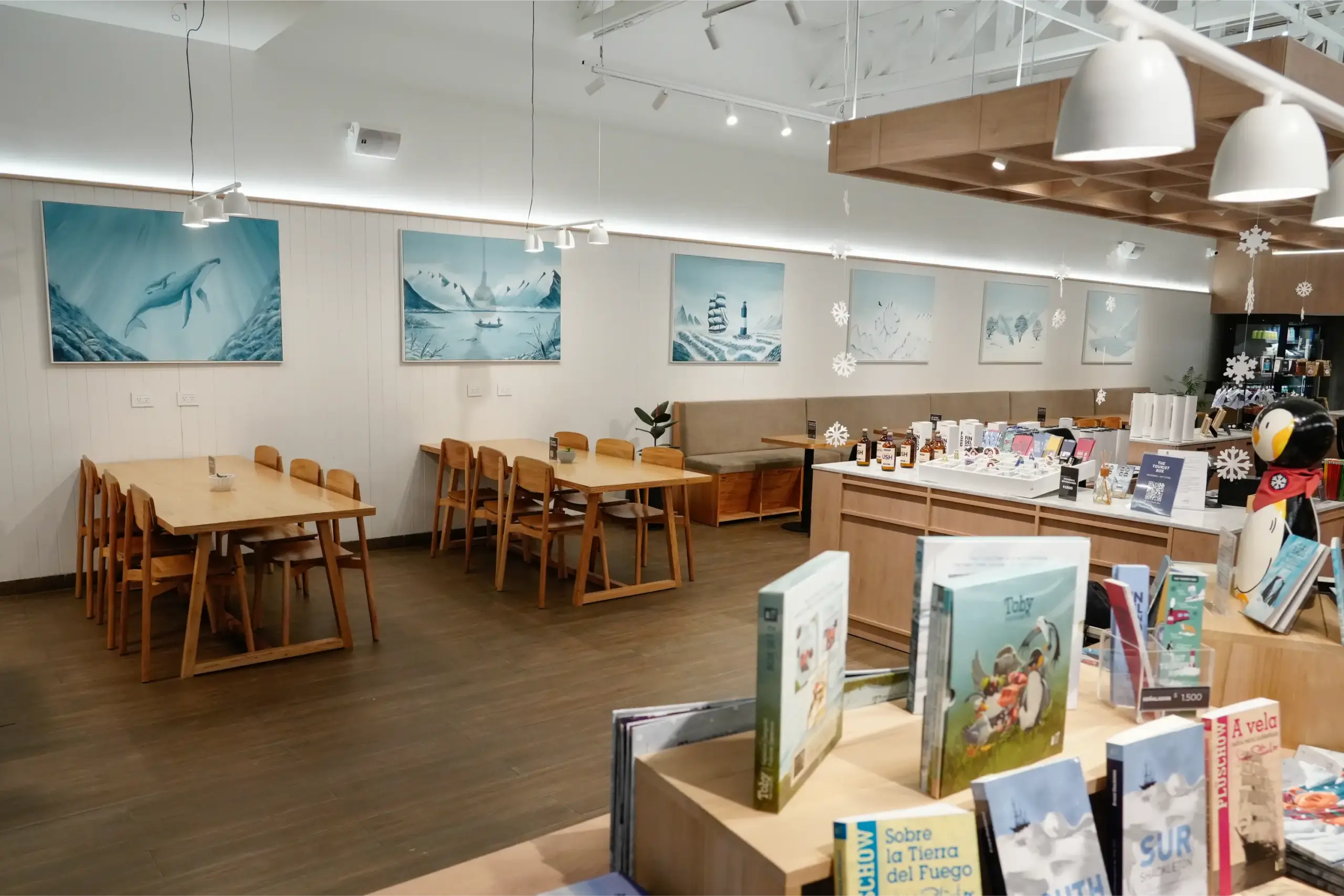 es un espacio único en Ushuaia que combina una cafetería de especialidad con pastelería exclusiva y una cuidada selección de souvenirs de diseño inspirados en Ushuaia y la Antártida.